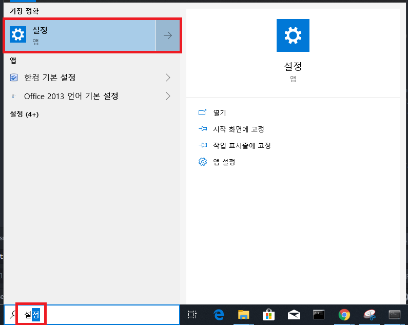 먼저, 윈도우 검색에서 설정을 검색한다.