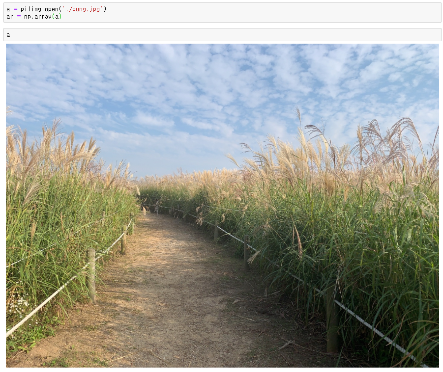 이 때, Maplotlib와 다른 점은 plt.imread는 array로 불러온다면, Piling.open은 이미지 자체를 불러오기 때문에 a를 출력하면 이미지 자체가 뜨게 된다.
