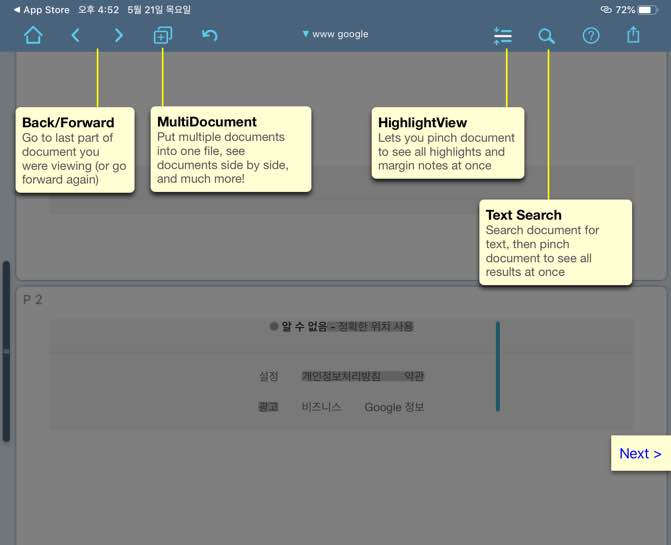 또 다른 필기어플들과 다른점은 Liquid Text 내에서 새로운 파일을 생성할 수는 없고, pdf나 웹페이지를 가지고와서 편집을 할 수 있는 것 같다!! ( 아직 많이 사용을 안해봐서 내가 모르는 걸수도 있다ㅠㅜ)