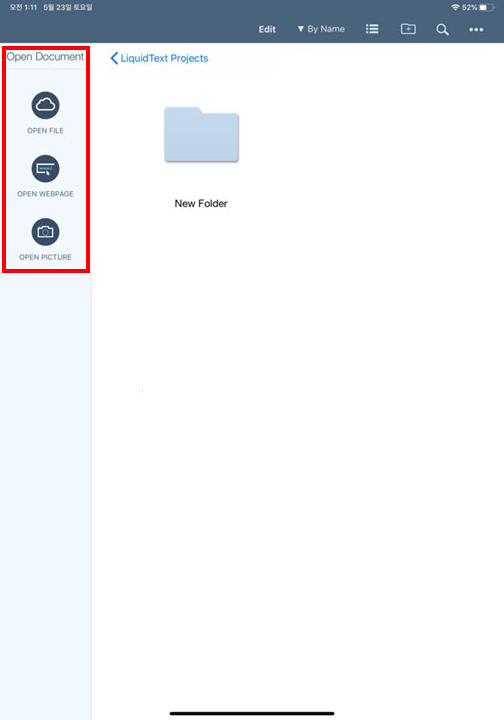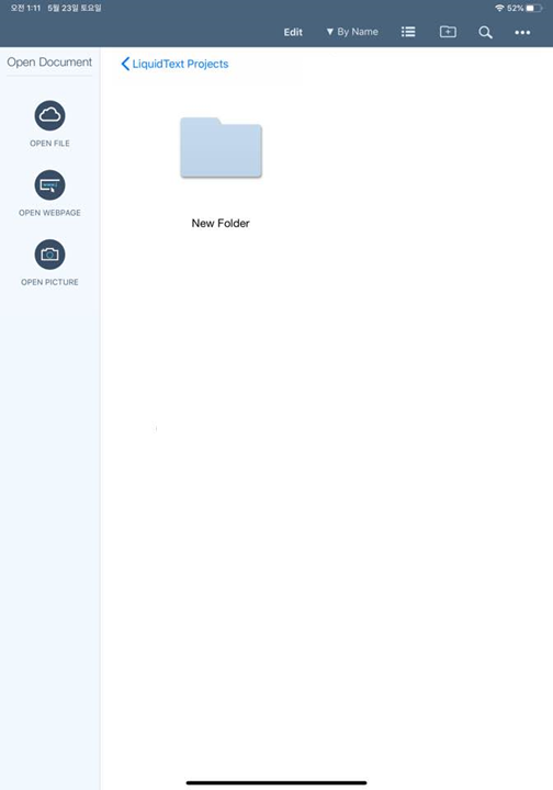 먼저 무언가를 편집하려면 그 파일을 가져오는 것부터 시작해야할 것이다. 다른 어플과 마찬가지로 간단하게 pdf를 가져올 수 있다. 먼저 Liquid Text 내에서 아래 버튼을 이용해 직접 가져올 수 있고, 다음은 오른쪽 사진처럼 켜있는 pdf를 Liquid Text로 옮길 수 있다.