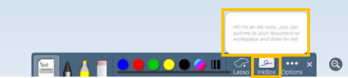 InkBox를 선택하면 다음과 같이 항상 친절하게 자기를 설명해준다. 그 설명대로 원하는 곳으로 선택해서 옮기면 오른쪽 사진처럼 위에 다양한 설정탭이 뜬다. 이것을 이용해서 다양하게 InkBox의 설정들을(색, 삭제, 복사 등) 바꿀 수 있다.