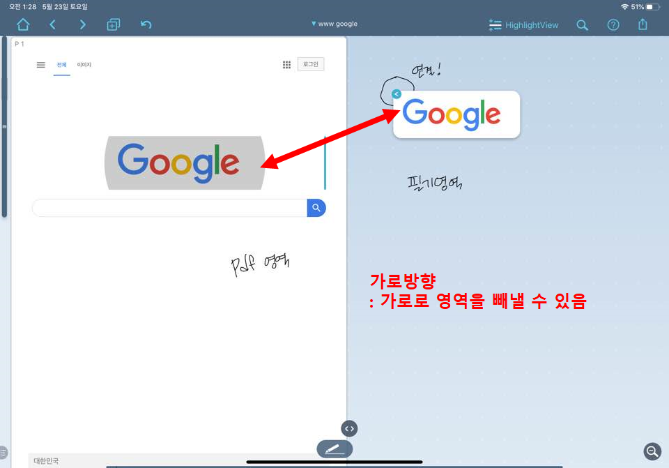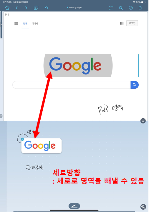 이렇게 선택된 영역들을 pdf 밖으로 빼주면 필기영역과 pdf를 연결해서 내용물이 빠져나오게 된다.