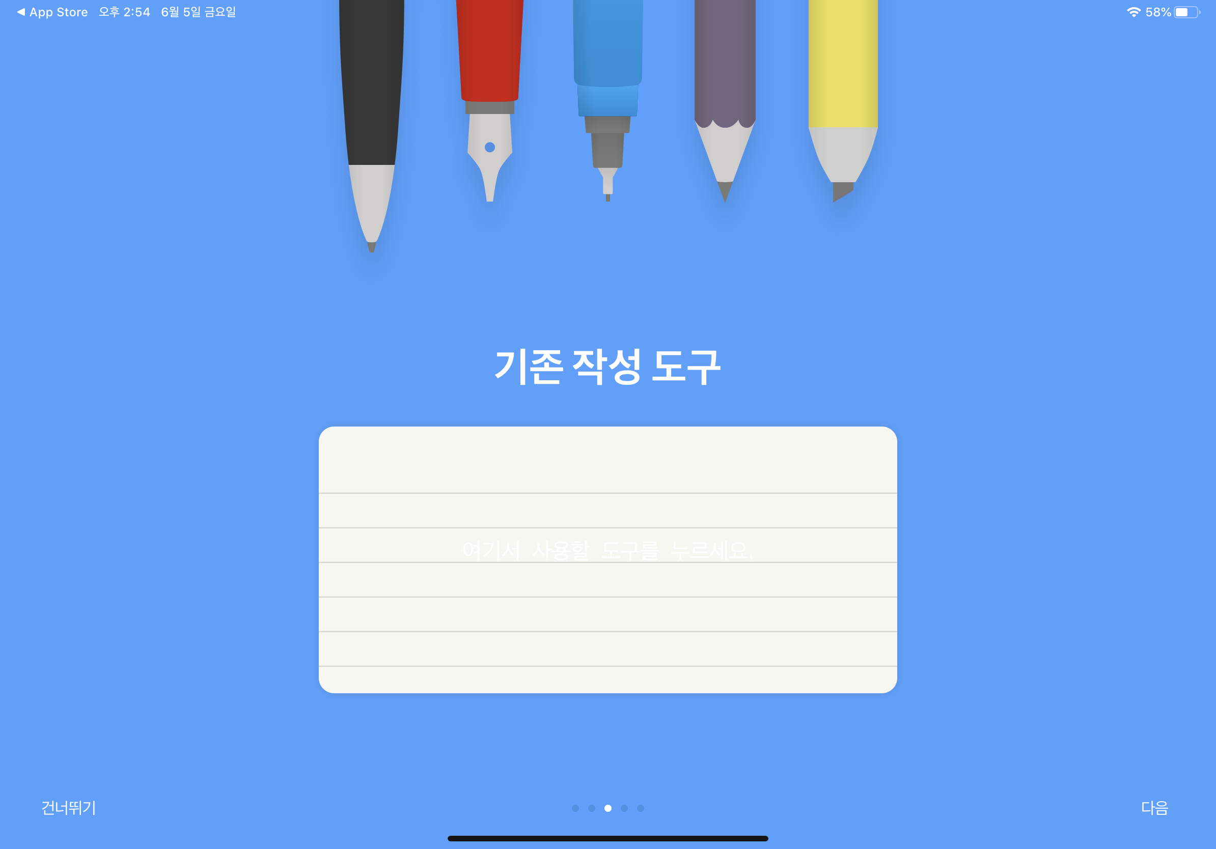 특히 위의 [기존 작성 도구] 같은 경우, 직접 도구들을 사용해보면서 각각 도구마다 어떤 필기감이 있는지 살펴볼 수 있다.