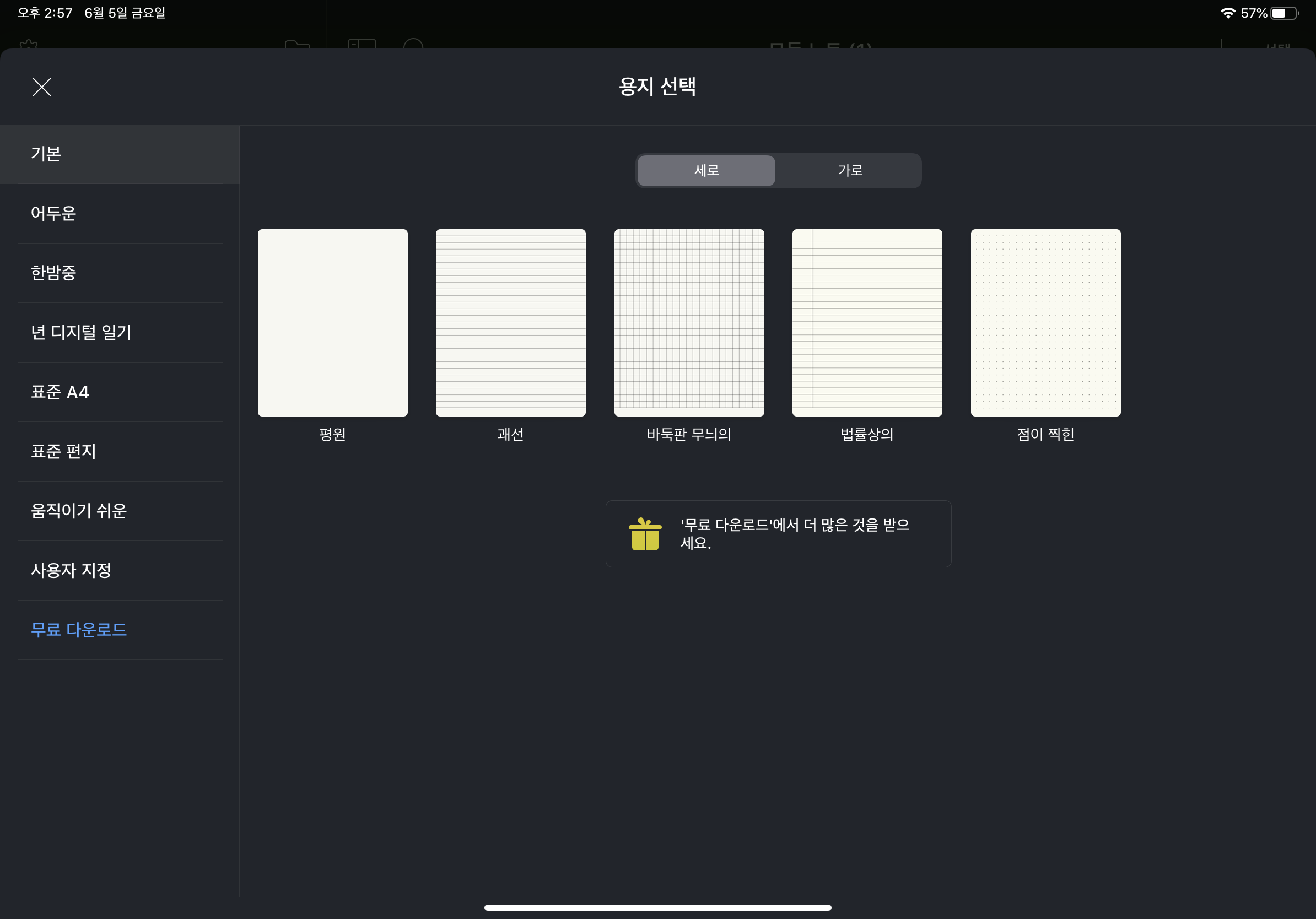[새 노트북] 버튼을 누르면 다음과 같이 속지와 커버를 선택할 수 있다.