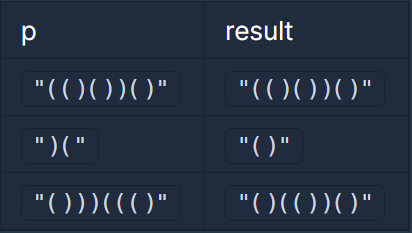 - 문자열 p를 이루는 '(' 와 ')' 의 개수는 항상 같습니다.
